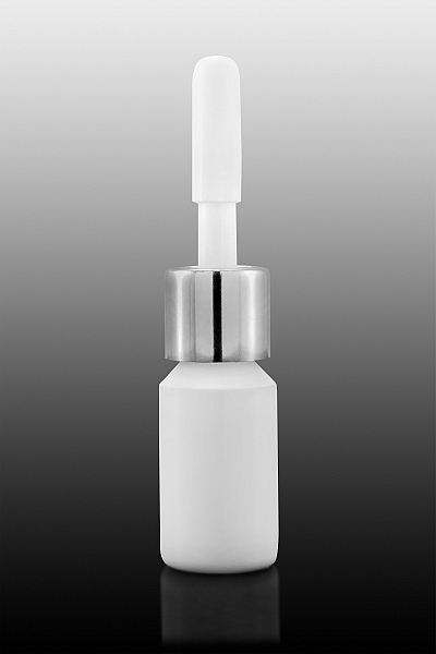 Butelka okrągła 3 ml, biała ze srebrnym kołnierzem i białym aplikatorem, PE i aluminium