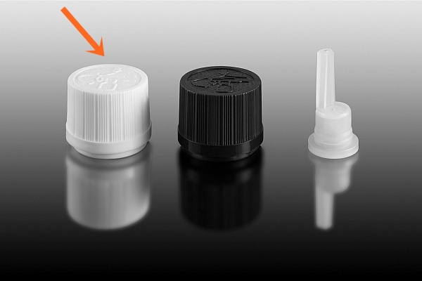 Nakrętka bezpieczna z pierścieniem gwarancyjnym 18/410, z kroplomierzem, biała, PE