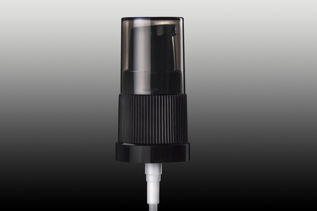 Pompka do kremu 18/415, długość rurki 115 mm, ryflowana, czarna z nasadką czarną transparentną