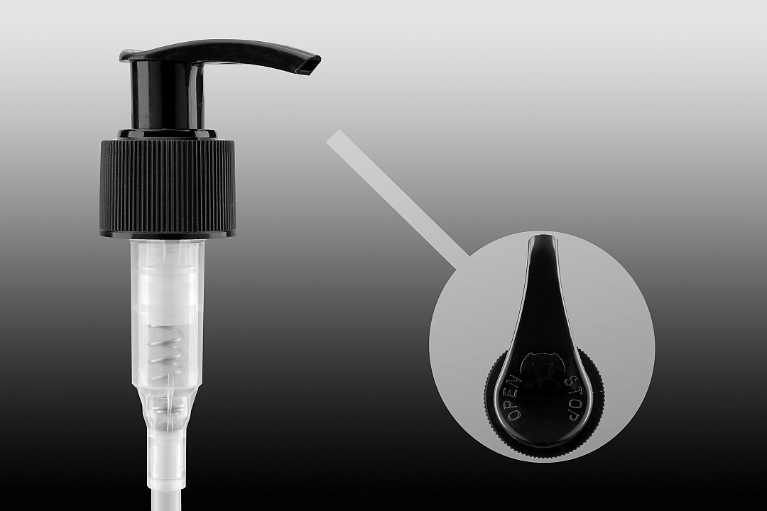Pompka dozująca 24/410, długość rurki 180 mm, ryflowana, czarna, PP