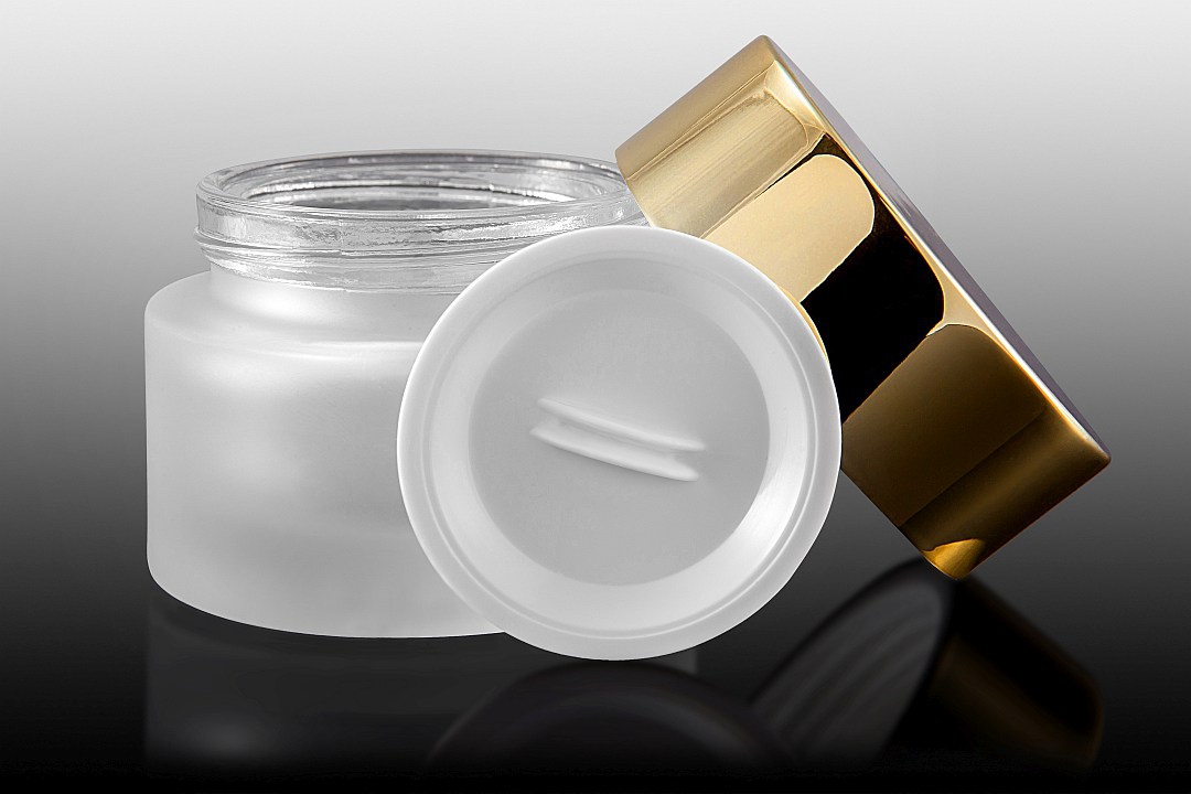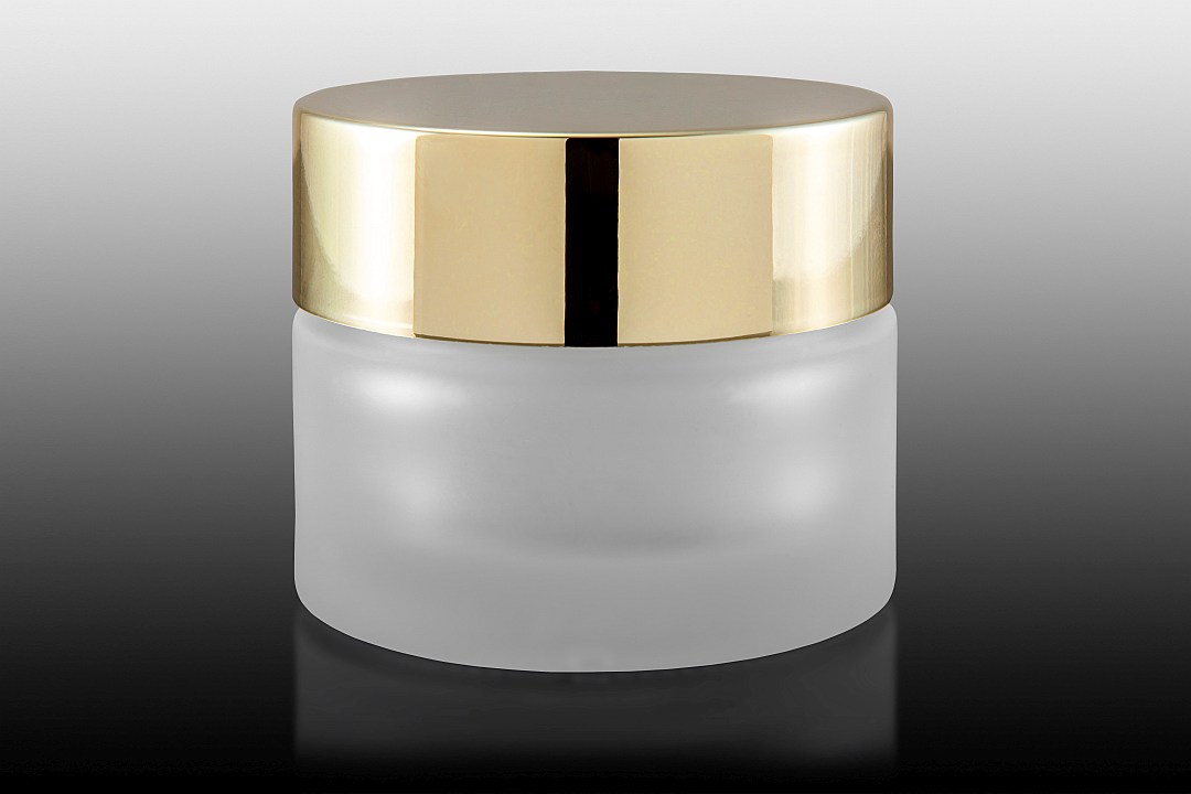 Okrągły słoik 30 ml, frostowany bezbarwny, nakrętka złota połysk, szkło i ABS